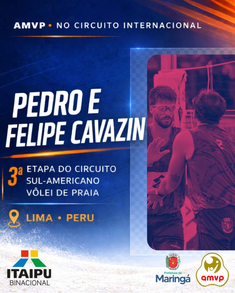 A Associação Maringaense de Vôlei de Praia (AMVP) segue avançando em sua trajetória esportiva e marca presença no cenário sul-americano da modalidade. A dupla Pedro e Felipe Cavazin entra em quadra em Lima, no Peru, para a disputa da 3ª etapa do Circuito Sul-Americano de Vôlei de Praia, entre os dias 17 e 19 de abril.